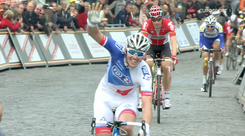 BINCHE (BELGIO) – Si respira aria di Mondiali e i principali velocisti, uno alla volta, lanciano segnali inequivocabili ai propri avversari. Oggi è stato il turno del giovane francese Arnaud Demare (FDJ) che in Belgio ha vinto la Binche – Chimay – Binche, abbinata al Memorial Frank Vandenbroucke, lasciandosi alle spalle tutti gli avversari nello sprint sul pavè.