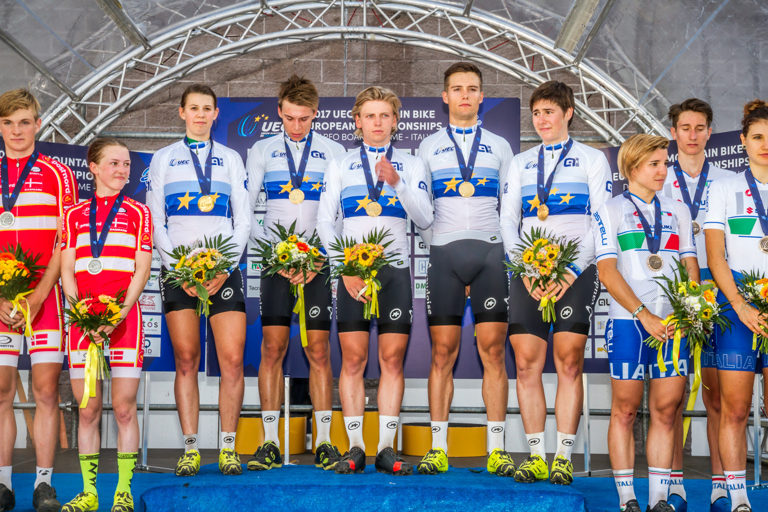 DARFO BOARIO TERME (BS) – Arriva subito la prima medaglia per l’Italia all’apertura dei Campionati Europei MTB di Darfo Boario Terme. Nalle prova del Team Relay (XCE), la staffetta azzurra ha conquistato la medaglia di bronzo con il quintetto formato da Gerhard KerschbaumerChiara TeocchiJuri ZanottiMarika Tovo Nadir Colledani