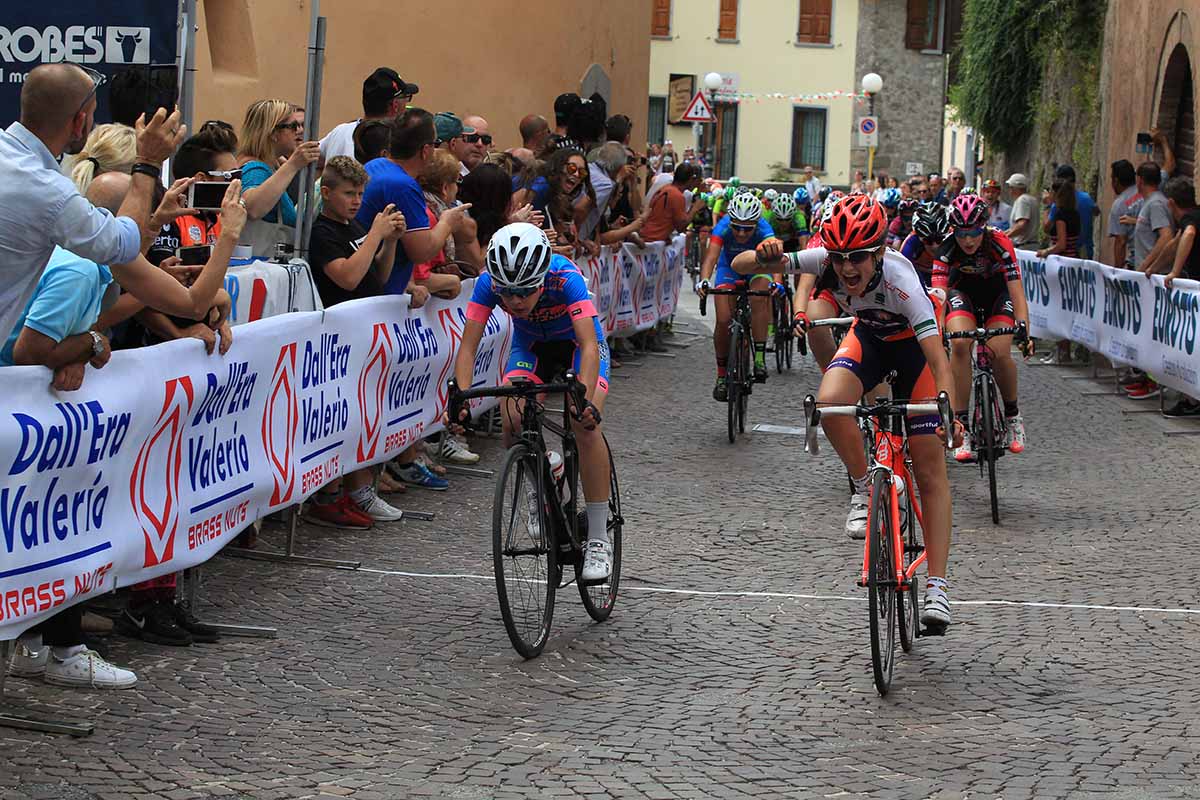 La plurivittoriosa tra le allieve in questo 2018 aggredisce l’ultimo gpm (e vince la classifica a punti speciale finale) e, sull’abbrivio, stacca tutte nella volata per la vittoria. Alessia Patuelli (Re Artù Factory Team) può solo sprintare per la piazza d’onore davanti a Francesca Barale (Pedale Ossolano), mentre Cristina Tonetti, quarta al traguardo, si aggiudica il titolo regionale su strada e firma una prestigiosa doppietta dopo il titolo lombardo a cronometro vinto a Romanengo.