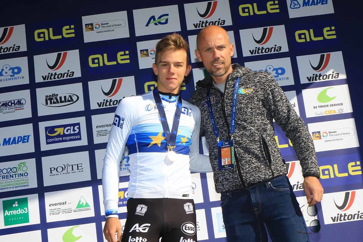 Il neo campione europeo Thibau Nys con papà Sven (foto Fabiano Ghilardi)