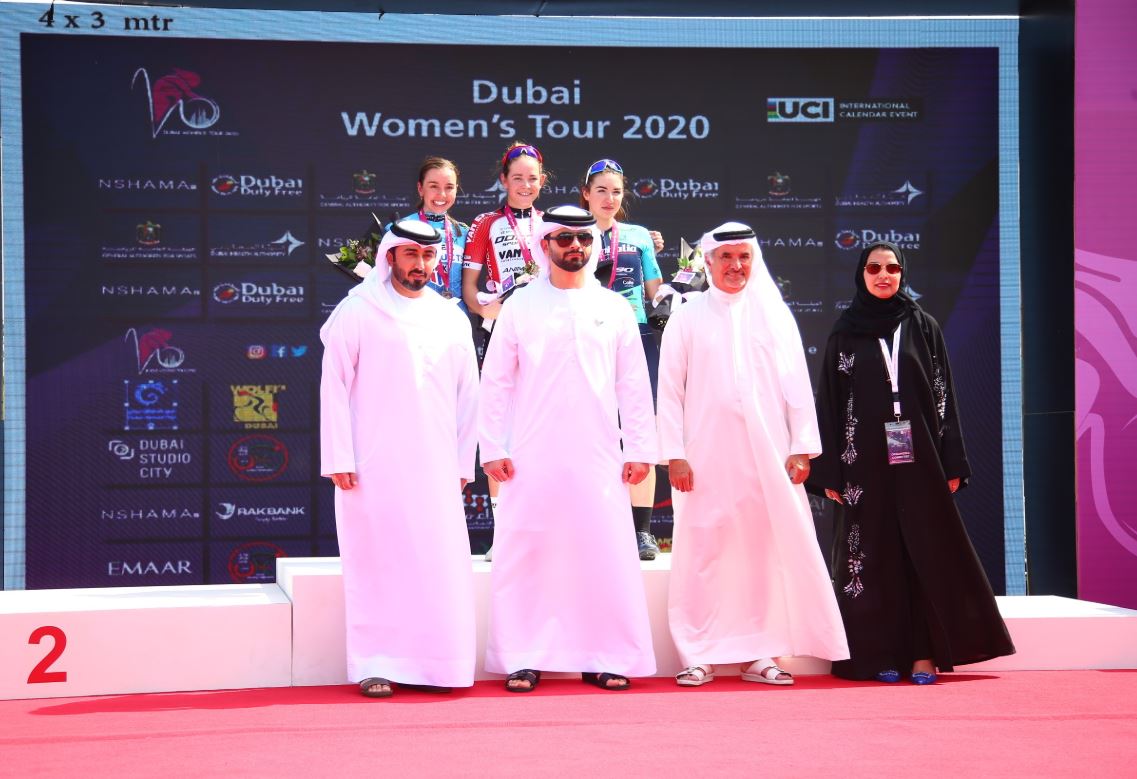 Il podio della quarta tappa del Dubai Women’s Tour 2020