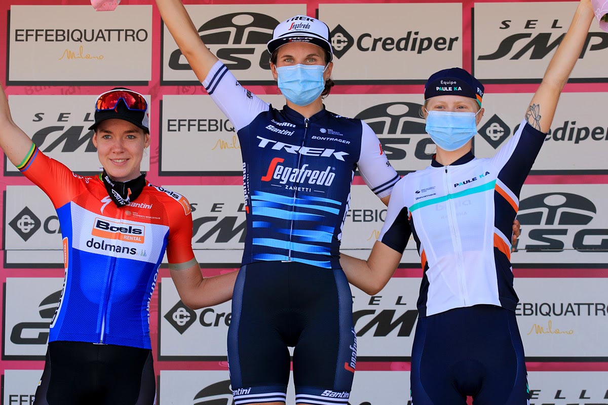 Il podio dell’ottava tappa del Giro Rosa 2020 (foto F. Ossola)