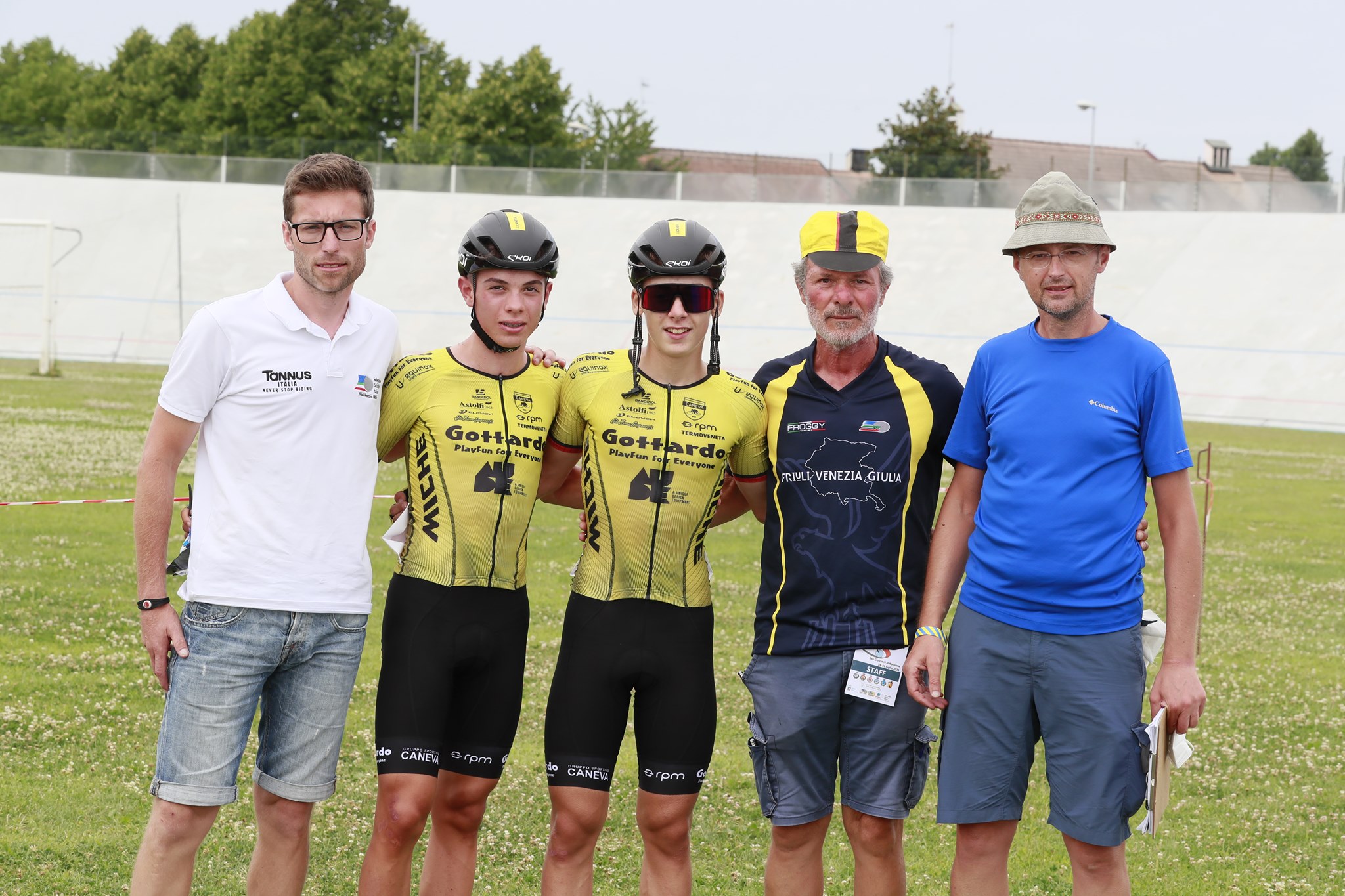 I friulani Davide Stella e David Zanutta hanno conquistato il titolo italiano della Madison tra gli Allievi. Sulla pista di San Giovanni al Natisone la coppia del team Gottardo Giochi Caneva ha preceduto di un punto (24 a 23) i lombardi della Biringhello Juan David Sierra e Myles Corey Porcelli. Medaglia di bronzo alla coppia dell’Alto Adige con Valentino Kamberaj e Filippo Serafini con punti 19.