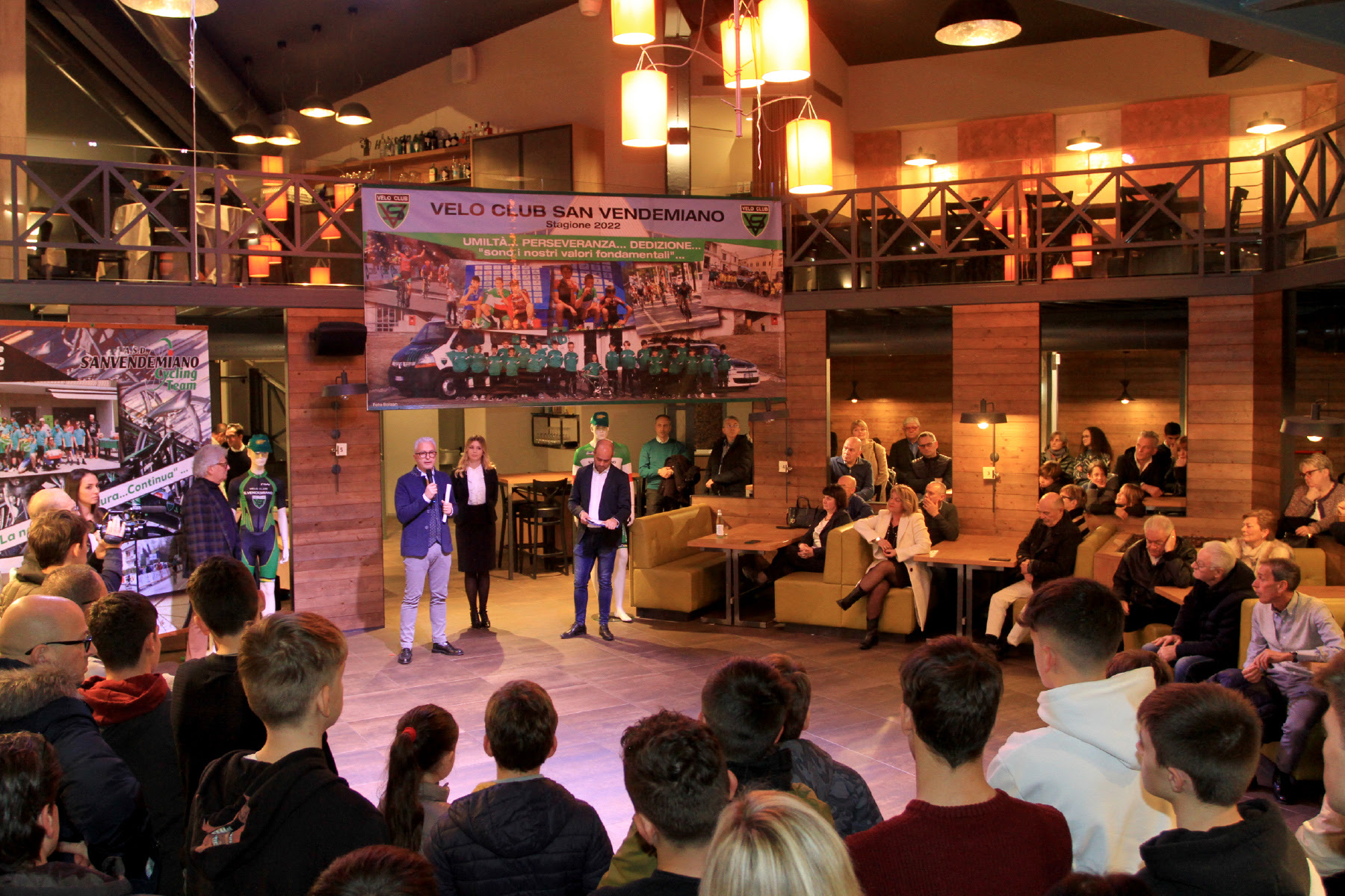 A far calare definitivamente il sipario su una annata che ha regalato successi storici al Velo Club San Vendemiano è stata la festa allestita all’interno del suggestivo New Garden di Ponte della Priula (Tv). Sul palco hanno sfilato tutti gli atleti che in questa stagione hanno indossato la storica casacca della formazione di San Vendemiano, i loro tecnici, tutti i collaboratori e gli sponsor che con passione e generosità continuano a sostenere il sodalizio trevigiano.