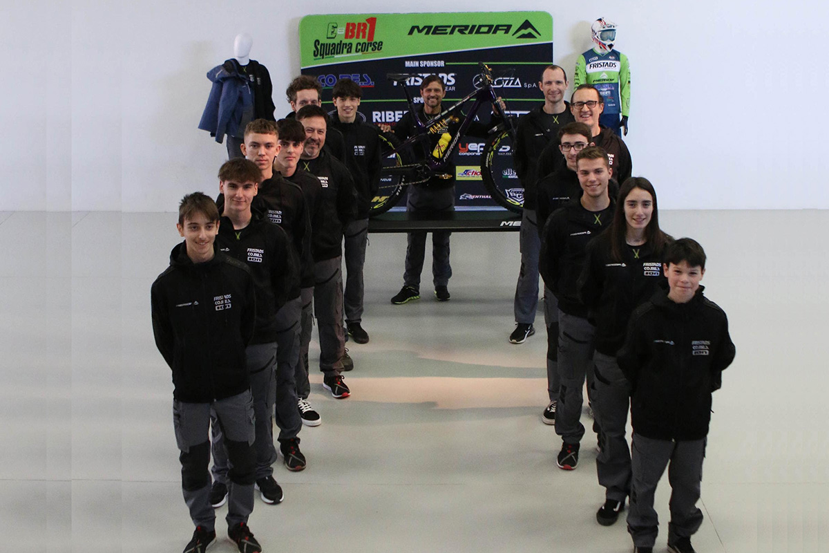 REGGIO EMILIA (RE) – Dopo aver tenuto a battesimo la presentazione del Romanese Cycling Team, formazione bergamasca che si cimenterà nelle competizioni giovanili su strada, la sede di Reggio Emilia di Merida ha ospitato un’altra importante presentazione: quella di E=BR1 Squadra Corse, il nuovo team allestito in collaborazione il team Fristad Comes di Bruno Zanchi e che gareggerà nei principali eventi Enduro in Italia e all’estero (nella foto di COmetaPress, la squadra in posa).