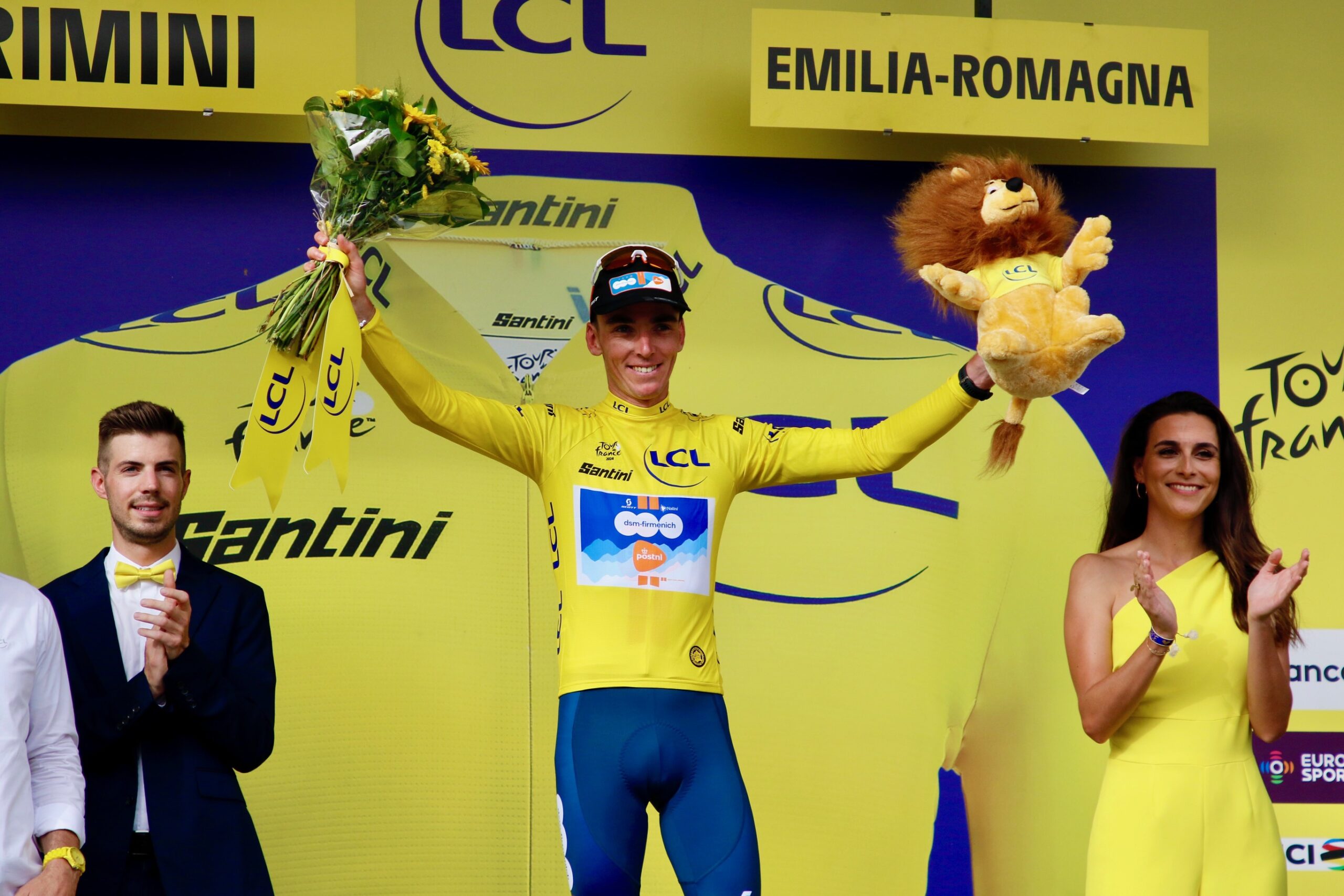 RIMINI – Romain Bardet vince la prima tappa del Tour de France e veste la maglia gialla. Il corridore francese attacca a circa 50 km dal traguardo, raggiungendo al comando il compagno di squadra Frank Van den Broek. I due riescono a resistere alla rimonta del gruppo e arrivo al traguardo di Rimini da soli. Il gruppo, giunto a 5″, viene regolato in volata dal belga Wout Van Aert.