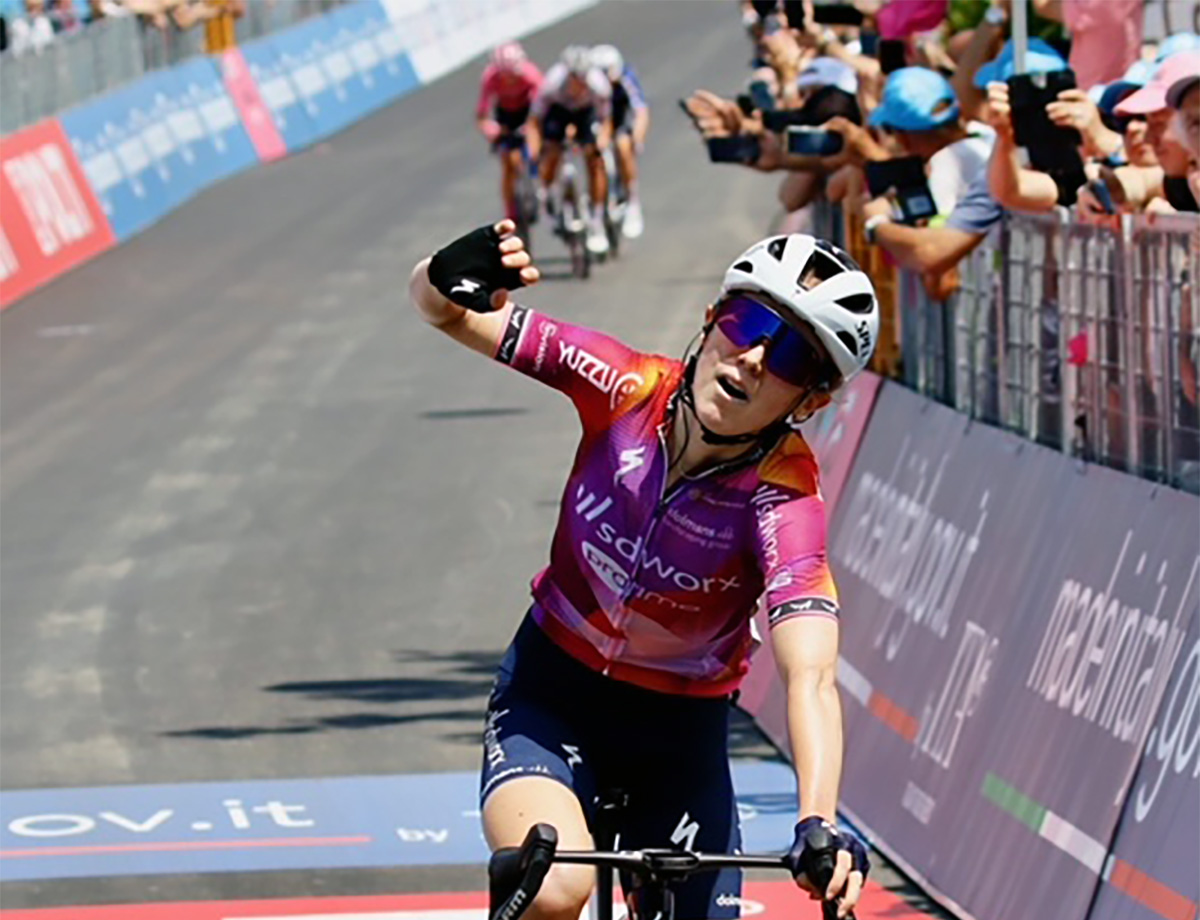 TOANO (RE) – Il primo arrivo in salita del Giro d’Italia Women 2024 regala la prima vittoria neozelandese nella storia della corsa rosa femminile: a imporsi sulle rampe di Toano, in provincia di Reggio Emilia, è stata infatti Niamh Fisher-Black (Sd Worx Protime), che ha fatto valere le sue doti da scalatrice uscendo dal gruppo delle migliori a 2 km dal traguardo, recuperando Mavi Garcia per poi staccarla irrimediabilmente nell’ultimo, impegnativo chilometro. Alle 6″ dalla vincitrice (nella foto di Photobicicailotto), hanno poi tagliato il traguardo l’iridata Lotte Kopecky, compagna di squadra della Fisher-Black, la francese Juliette Labous (Team dsm-firmenich PostNL) e la maglia rosa Elisa Longo Borghini (Lidl-Trek), che ha difeso il simbolo del primato indossato già al termine della cronometro inaugurale di Brescia.