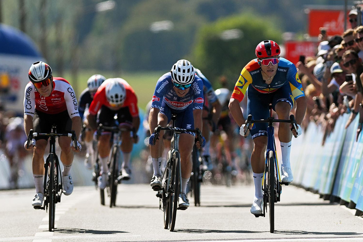 BILZEN (BEL) – Aveva aperto il suo agosto con il bronzo olimpico nell’inseguimento a squadre, poi sono arrivate le tre vittorie di tappe e la maglia della classifica a punti al Deutschland Tour e ora Jonathan Milan ha completato l’opera aggiudicandosi anche la prima frazione del Renewi Tour, corsa a tappe del World Tour che è scattata oggi con la Riemst – Bilzen di 164km (nella foto di Lidl-Trek, l’arrivo).