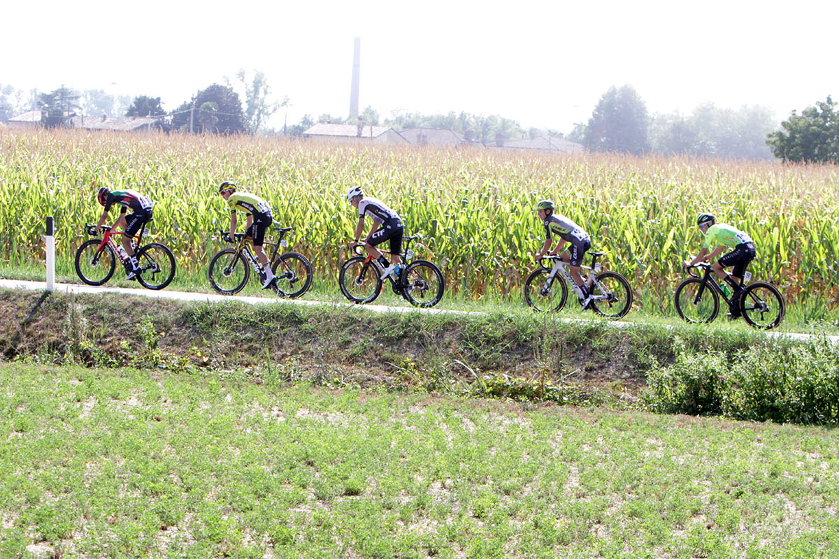 Poi il gruppo inizia a recuperare terreno. Nel frattempo Kyle Stedman Travis vince il secondo traguardo volante di Porpetto (km 111), mentre lo sloveno Natan Gregorcic (Ljubljana Gusto Santic) e lo svizzero Christoph Janssen (Swiss Cycling) escono dal gruppo all’inseguimento dei cinque uomini al comando. A 50 km dall’arrivo i battistrada hanno un vantaggio di 2’16” sul gruppo. A meno di 40 km dalla conclusione il divario è già sceso sotto il minuto.