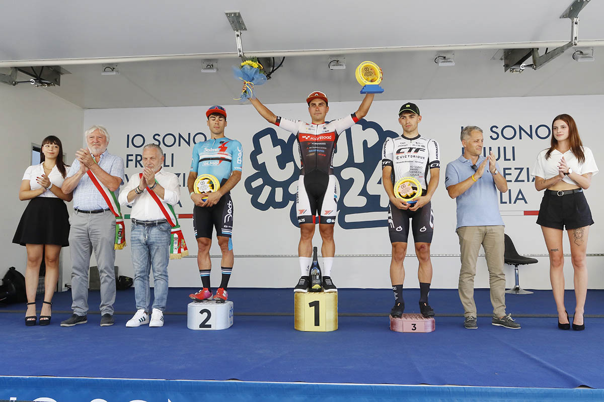 Il podio della prima tappa del Giro della Regione Friuli Venezia Giulia (foto Bolgan)