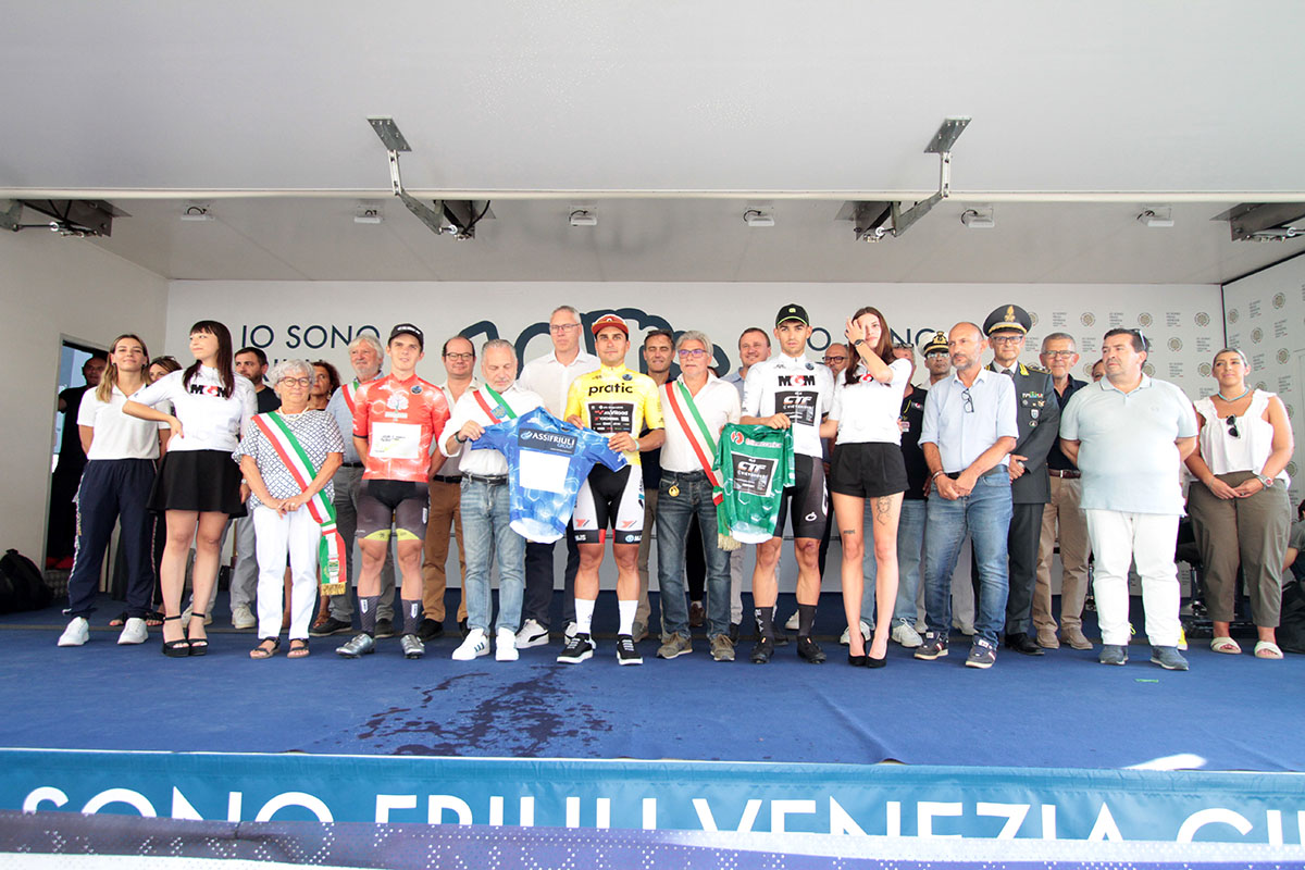 Alla partenza di Palazzolo dello Stella, che questa mattina ha dato il via all’edizione numero 60 della prestigiosa corsa a tappe friulana, erano presenti diverse autorità a rendere omaggio al gruppo dei corridori e agli organizzatori: il presidente del consiglio regionale del Friuli Venezia Giulia Mauro Bordin, il sindaco di Palazzolo dello Stella Franco D’Altilia e quello di San Giorgio di Nogaro Pietro Del Frate, il presidente del Comitato Regionale della Federciclismo Friuli Stefano Bandolin ed il campione Dino Zandegù. Nel finale è arrivato a far visita anche il plurivincitore di stagione e campione olimpico di Tokyo 2020 Jonathan Milan.