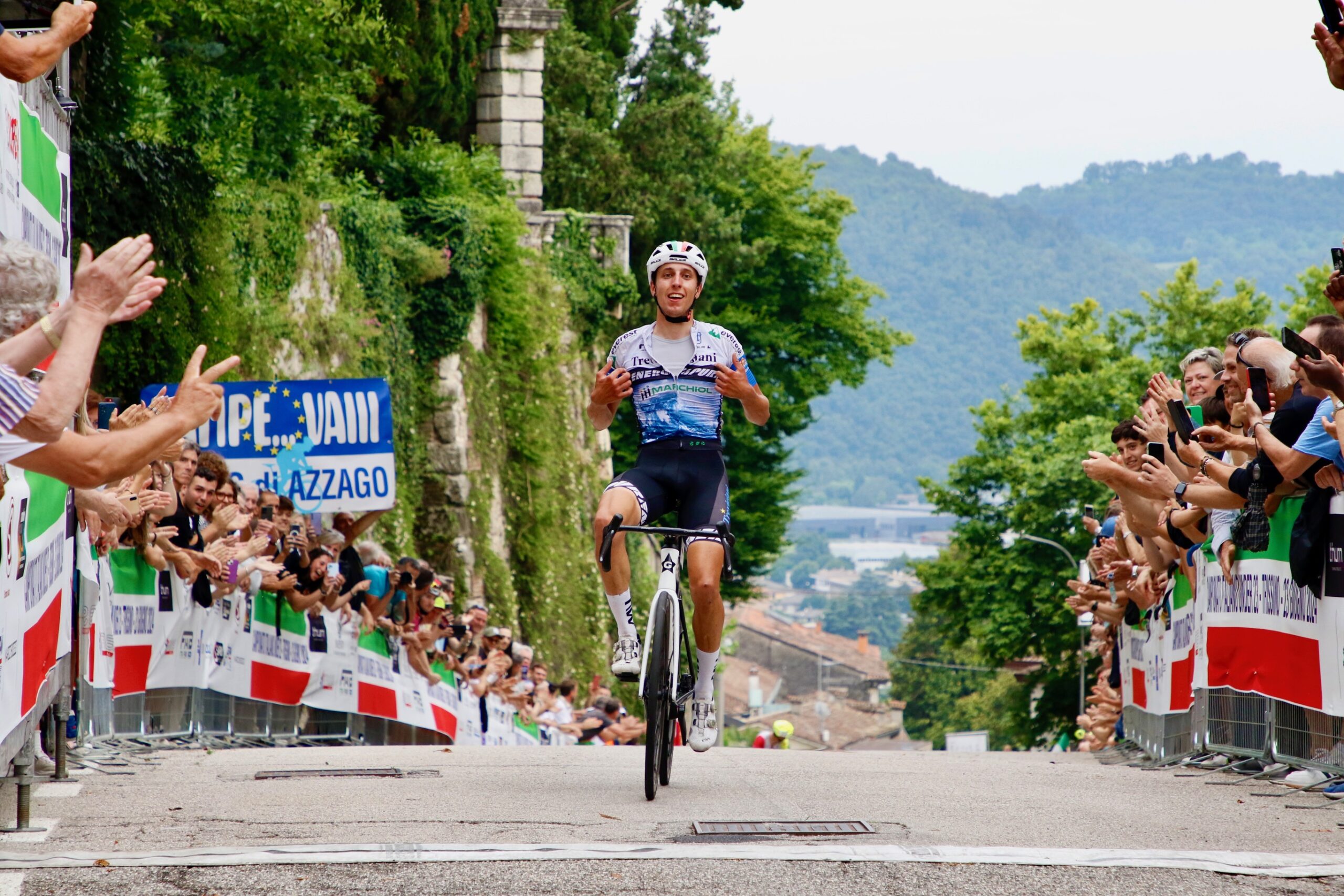 TRISSINO (VI) – Edoardo Zamperini è il nuovo campione italiano Under 23. Con un azione sulla salita finale di Selva, a circa 20 km al traguardo, il corridore veronese della Trevigiani Energiapura Marchiol stacca i compagni di fuga.