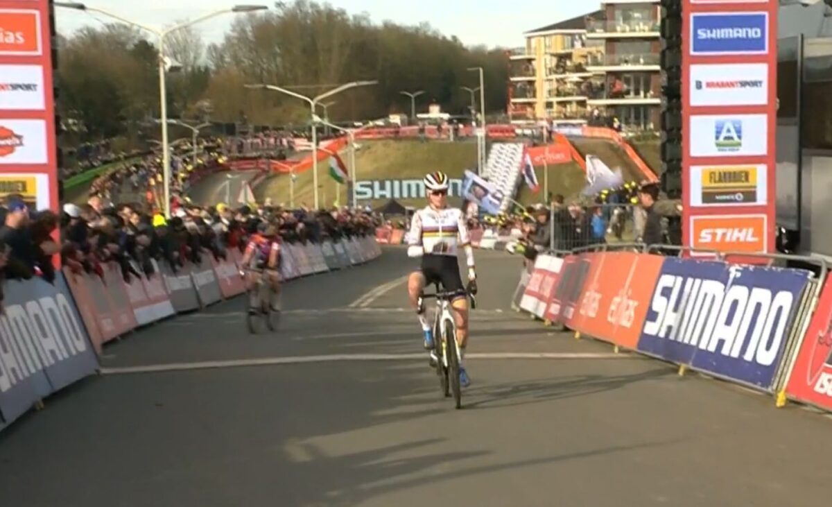 Con quella di oggi salgono a dodici le vittorie stagionali di Mathieu Van Der Poel che sarà l’uomo da battere anche al mondiale di Tabor, dove tra l’altro mancheranno Tom Pidcock e Wout Van Aert.