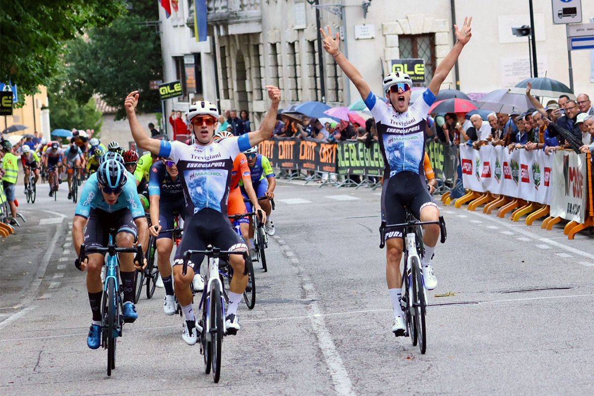 Negli ultimi 30 km però la pressione del gruppo si fa insostenibile per i battistrada, che vengono ripresi prima del suono della campana. Sul rettilineo di Sommacampagna, quindi, il pubblico ha potuto assistere a una volata a ranghi compatti, che ha premiato l’esperto Cristian Rocchetta, con Matteo Baseggio esultante alle sue spalle.