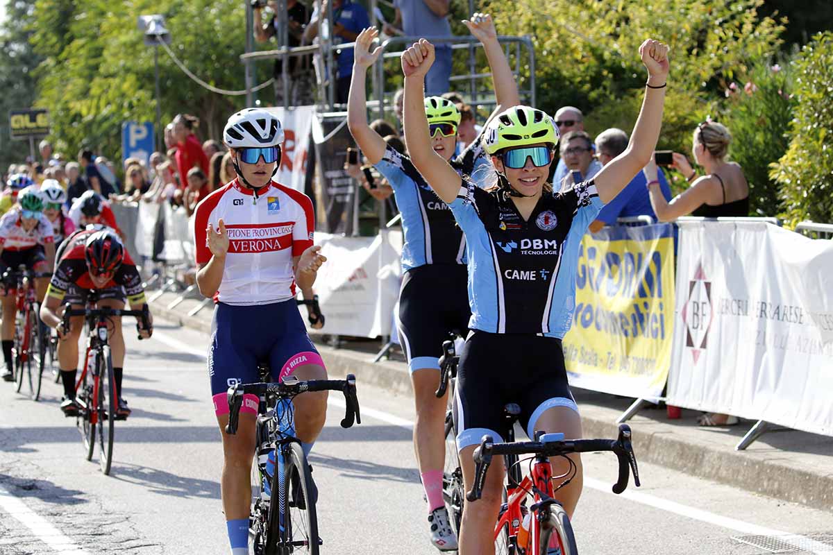 La prima metà di corsa scorre via ad andatura turistica, poi negli ultimi due giri si accende con vari tentativi di fuga, tutti annullati. Tutto si decide in volata: dall’ultima curva esce in prima posizione Asia Sgaravato che però si vede rimontata da Chantal Pegolo.