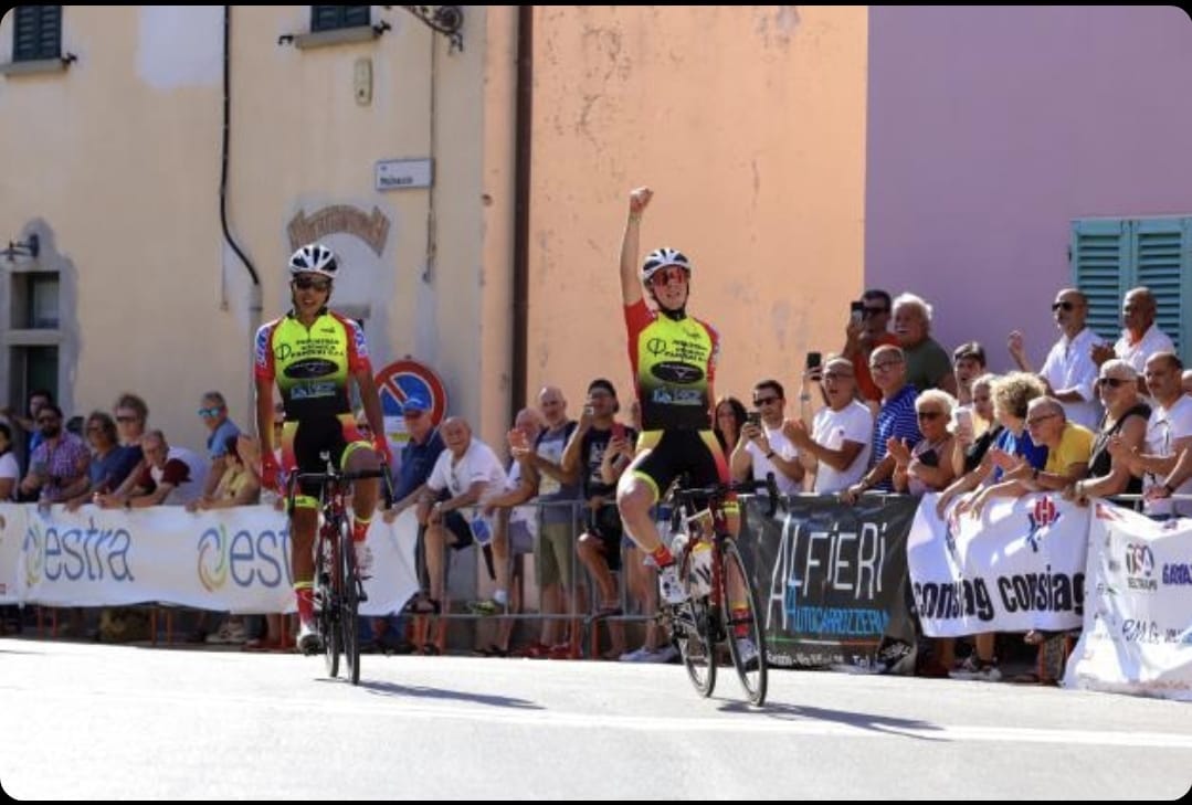 Al Giro del Montalbano, con arrivo in salita a Bacchereto, in provincia di Prato, primo posto per Gerardo Sessa e secondo posto per il suo compagno di squadra, il marocchino/lecchese Imad Sekkak. I due compagni sono arrivati in parata al traguardo (foto Simona Bernardini Fotografia Sportiva).