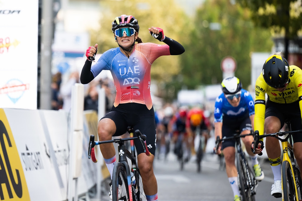 STUTTGART (GER) – Dopo la medaglia di bronzo al Campionato Europeo WU23, Eleonora Gasparrini ha festeggiato oggi la sua terza vittoria personale della stagione vincendo allo sprint in Germania il Women’s Cycling Grand Prix Stuttgart & Region (nella foto di Sprint Cycling Agenxy, lo sprint). Un successo che corona il lavoro di tutta la squadra UAE Team ADQ.
