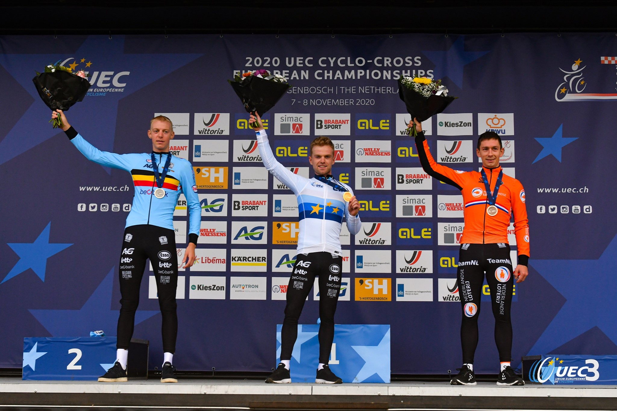 Il podio del Campionato Europeo Ciclocross Elite 2020 (foto UEC/BettiniPhoto)