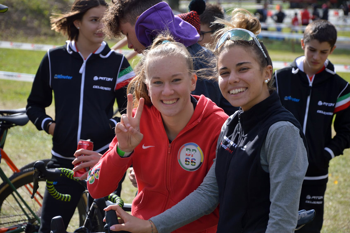 Beatrice Temperoni con Bianca Perusin al termine della prima tappa del Giro d’Italia Ciclocross 2021/22 a Osoppo