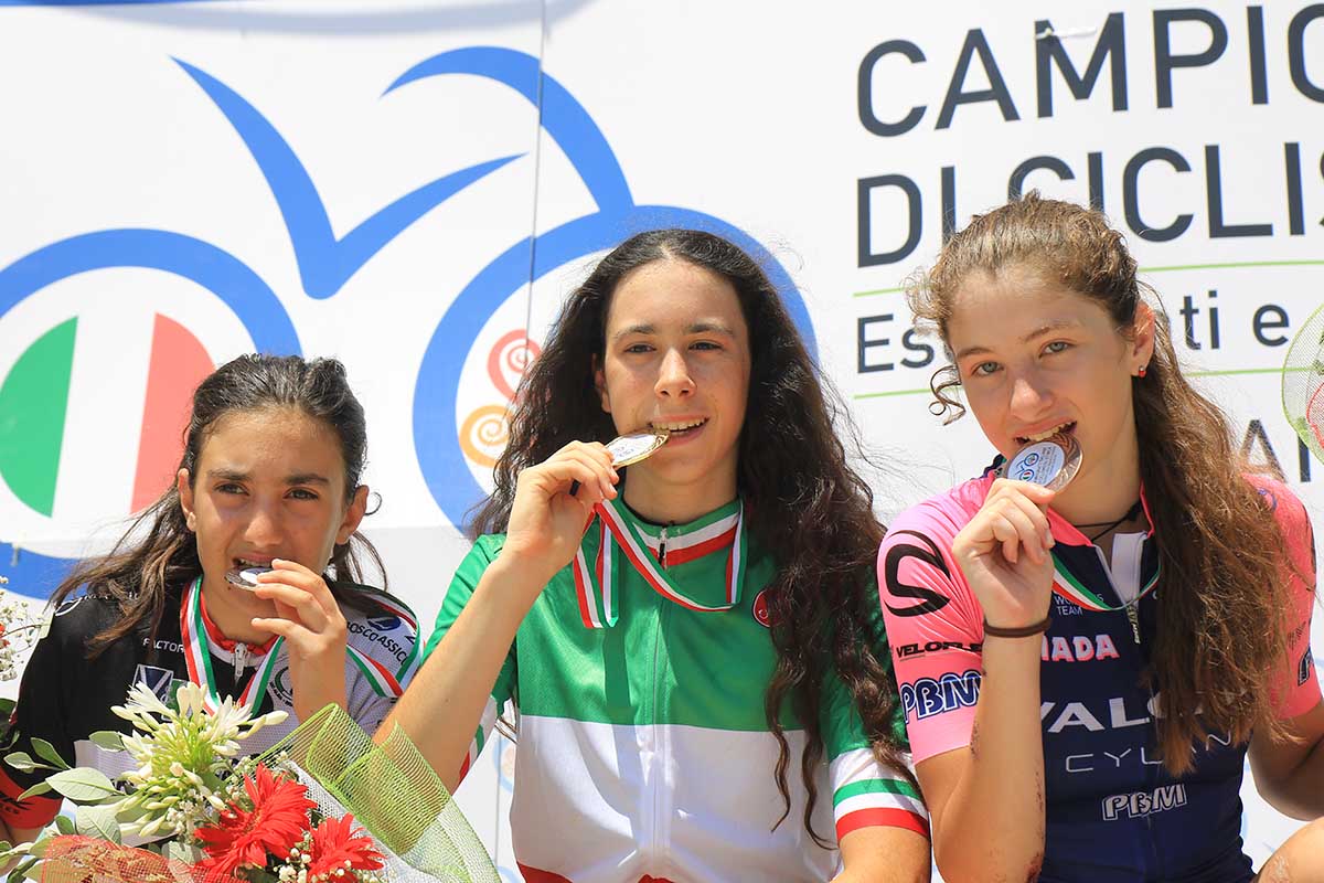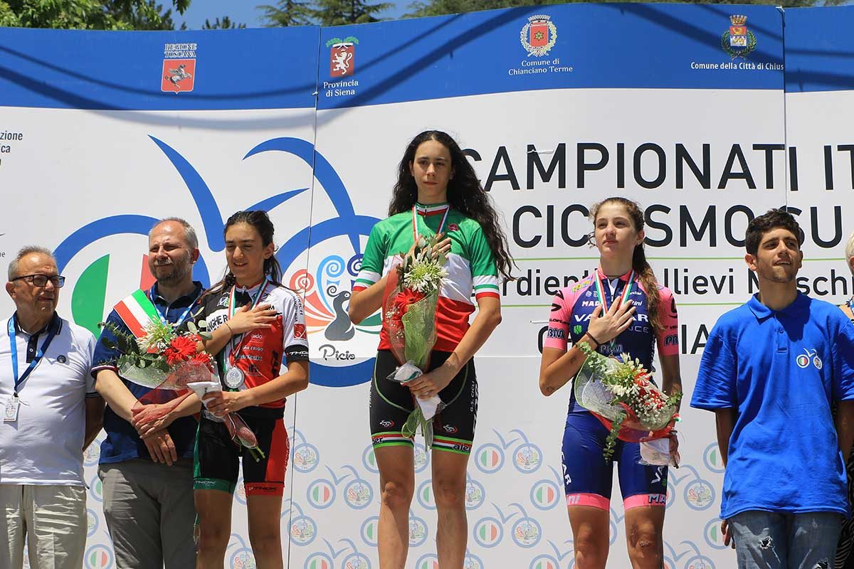 Il podio del Campionato Italiano Donne Esordienti 2° anno vinto a Chianciano Terme da Federica Venturelli (foto Fabiano Ghilardi)