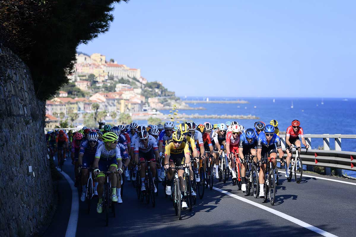 Sulla salita della Cipressa, dopo le prime rampe, scatta Loic Vliegen (Circus – Wanty Gobert) inseguito e poi raggiunto da Jacopo Mosca (Trek-Segafredo). Si muove anche Giulio Ciccone (Trek-Segafredo), ma il gruppo non gli concede troppo spazio. Nel frattempo l’accelerazione sulla Cipressa fa male all’australiano Caleb Ewan e al colombiano Fernando Gaviria (UAE Team Emirates), due tra i grandi favoriti alla vittoria, che si staccano inesorabilmente.