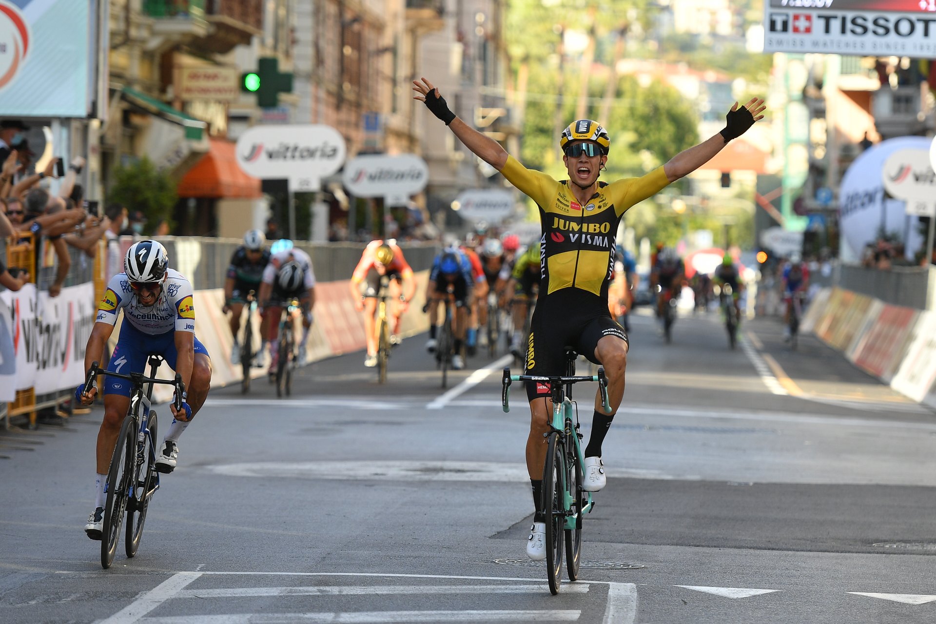 SANREMO (IM) – Sette giorni dopo il trionfo alla Strade Bianche, il belga Wout Van Aert firma un nuovo capolavoro e vince la 111esima edizione della Milano-Sanremo. Il corridore del Team Jumbo-Visma ha battuto in una volata a due mozzafiato il francese e vincitore uscente Julian Alaphilippe (Deceuninck – Quick-Step) che non è riuscito a rimontare sul rivale. Ha vinto la volata del gruppo per il terzo posto l’australiano Michael Matthews (Team Sunweb). È un giorno importante per Van Aert – già tre volte campione del mondo di ciclocross – che in via Roma ottiene la prima vittoria in carriera in una Classica Monumento e si conferma, a 25 anni, come uno dei più grandi e versatili talenti del ciclismo mondiale.