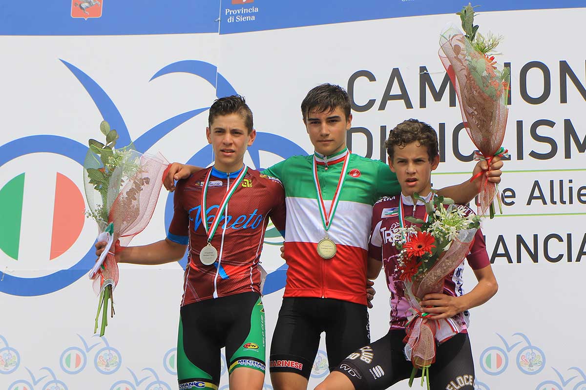 Il podio del Campionato Italiano Esordienti 1° anno vinto a Chianciano Terme da Franco Cazzarò (foto Fabiano Ghilardi)