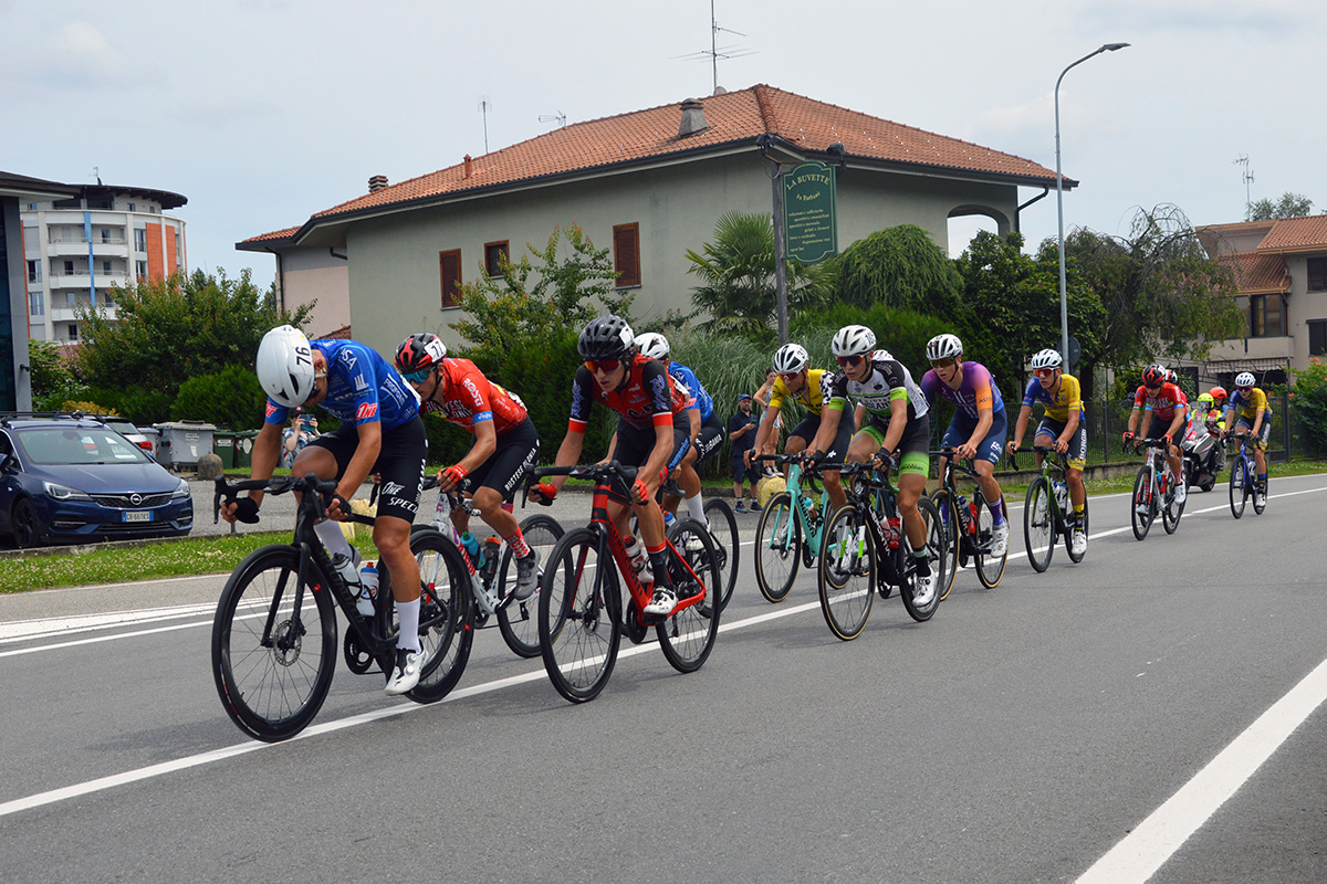 Una volta riassorbito questo tentativo, ha preso forma un’altra azione da lontano, questa volta promossa da quattro atleti: Edoardo Raschi (Team Giorgi), Eric Venturini (Fagnano Nuova), Gabriele Scagliola (Rostese) e Thomas Doghetti (Gb Team Pool Cantù). Solo sfruttando i primi due passaggi sullo strappo del Colombaro (350 metri con punte del 18%) e grazie al forcing dell’UC Piasco, sui quattro attaccanti sono riusciti a riportarsi nel finale anche Riccardo Giuliano (Uc Piasco), Nicolò Missaglia (Bustese Olonia), Thomas Rigamonti (Gb Team Pool Cantù) e l’inesauribile Alberto Antenucci (Canturino), già in avanscoperta nel gruppo dei dodici.