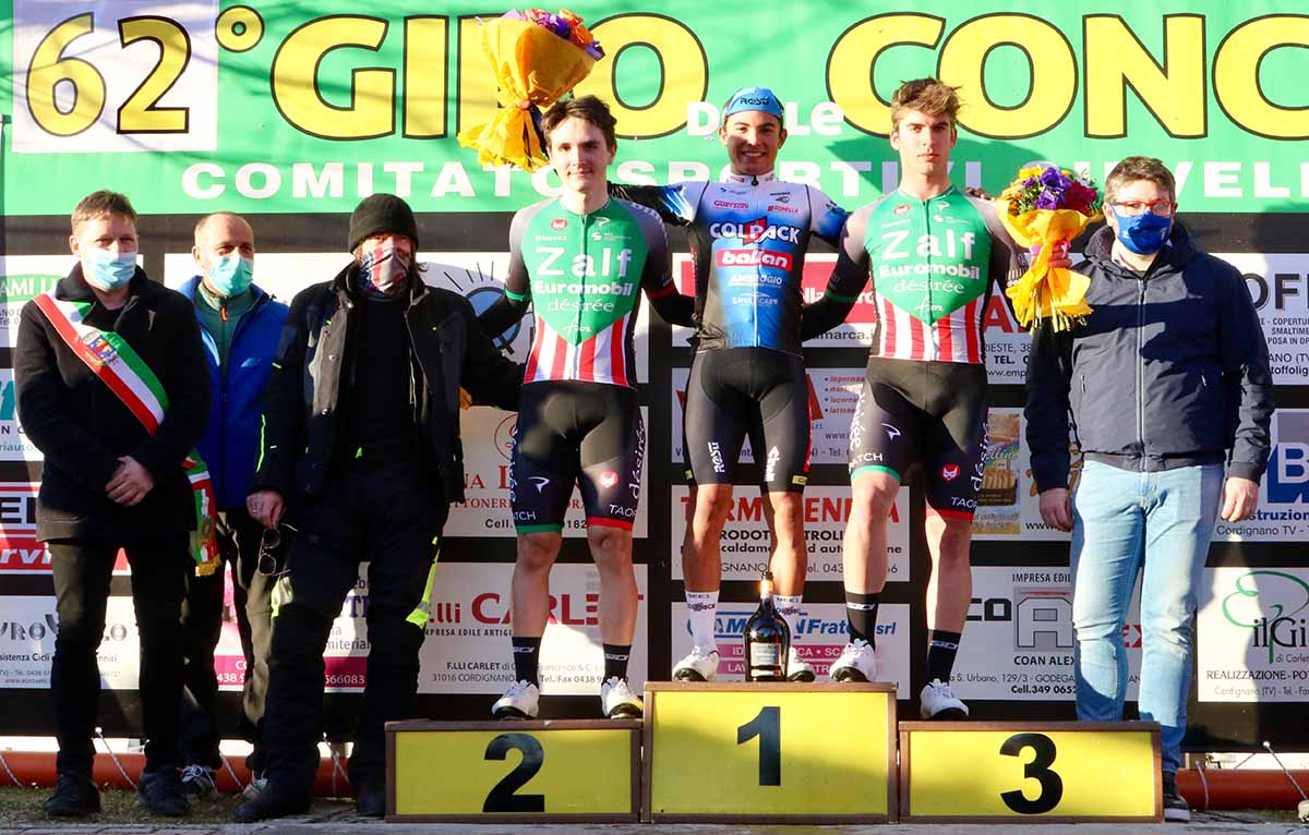 SILVELLA DI CORDIGNANO (TV) – Prima vittoria della stagione per il colombiano Nicolas Gomez e terzo successo stagionale per il Team Colpack Ballan. Il velocista sudamericano ha vinto in volata il Gran Premio Primavera per Elite e Under 23 che si è corso oggi a Silvella di Cordignano, in provincia di Treviso. Battuti Elia Menegale e Alessio Portello, coppia della della Zalf Euromobil Desirée Fior (foto Photobicicailotto).