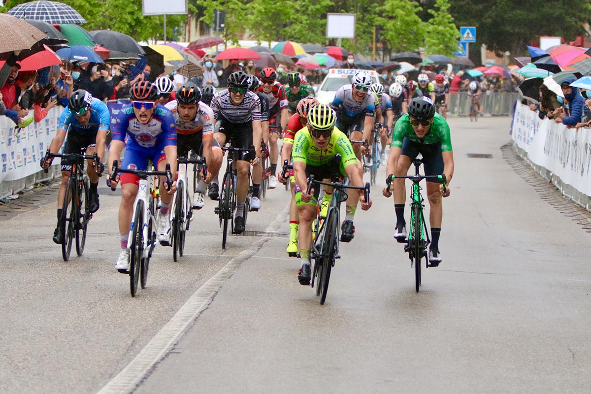 Ma la reazione del gruppo è stata implacabile, nonostante il maltempo, ed è piombato sui due fuggitivi dentro l’ultimo chilometro di gara. Epilogo in volata, incertissima, con il bellissimo testa a testa tra Di Benedetto e Rocchetta che ha premiato il corridore friulano.