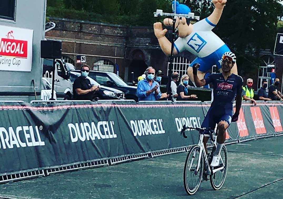 Jonas Rickaert festeggia la prima vittoria da professionista alla Dwars door het Hageland