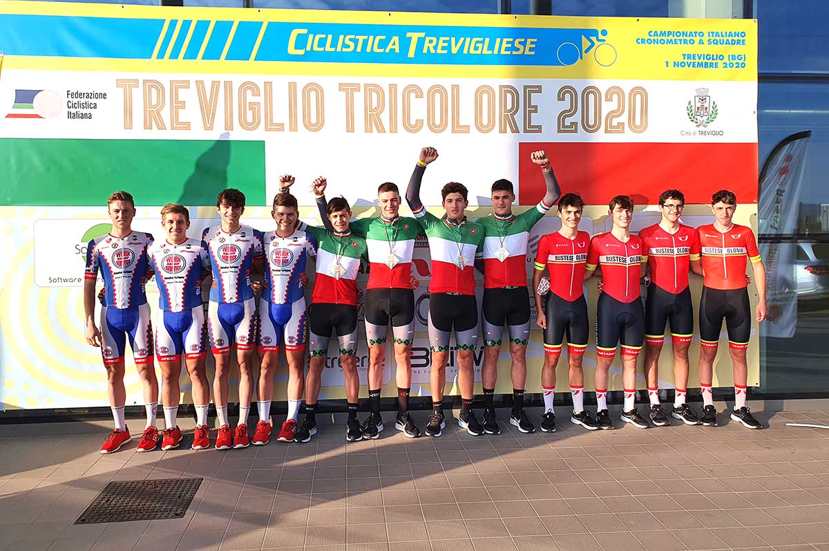 Medaglia di bronzo per l’Us Bustese Olonia che guadagnano una posizione dopo che la giuria ha inflitto 20 secondi di penalità ai bresciani della Gc Feralpi Group che avevano chiuso al terzo posto al traguardo. A comporre il quartetto dei varesini sono Nicolò Pettiti, Manuel Oioli, Matteo Lovera ed Edoardo Mauro Alleva.