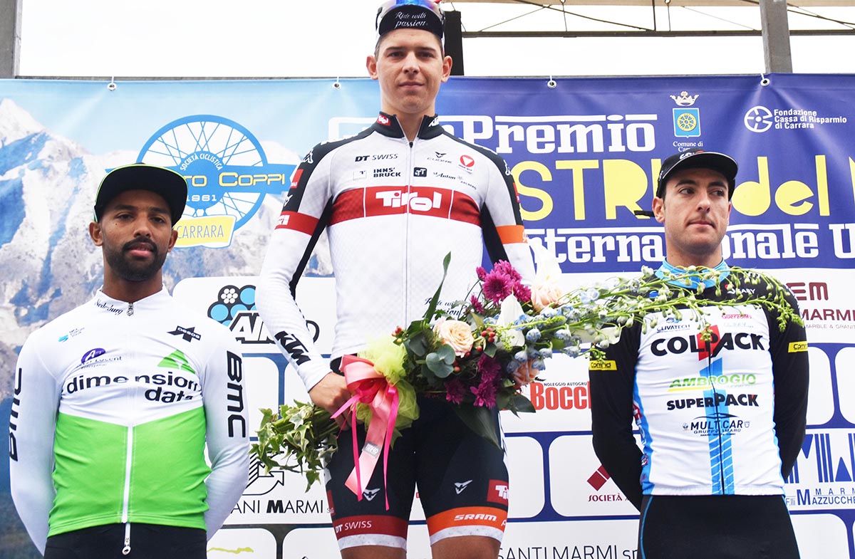 CARRARA (MS) – Patrick Gamper, austriaco del Team Tirol KTM, ha vinto il Gran Premio Industrie del Marmo di Carrara internazionale Under 23. Il corridore della Tirol Ktm si è imposto in solitaria, precedendo di 40 secondi gli ex compagni di fuga, il marocchino Mehdi El Chokri (Dimension Data for Qhubeka) e il siciliano Paolo Baccio ( Team Colpack) giunti nell’ordine alle sue spalle. Da segnalare che i tre facevano parte della fuga di giornata partita quando mancavano ancora 100 km all’arrivo.