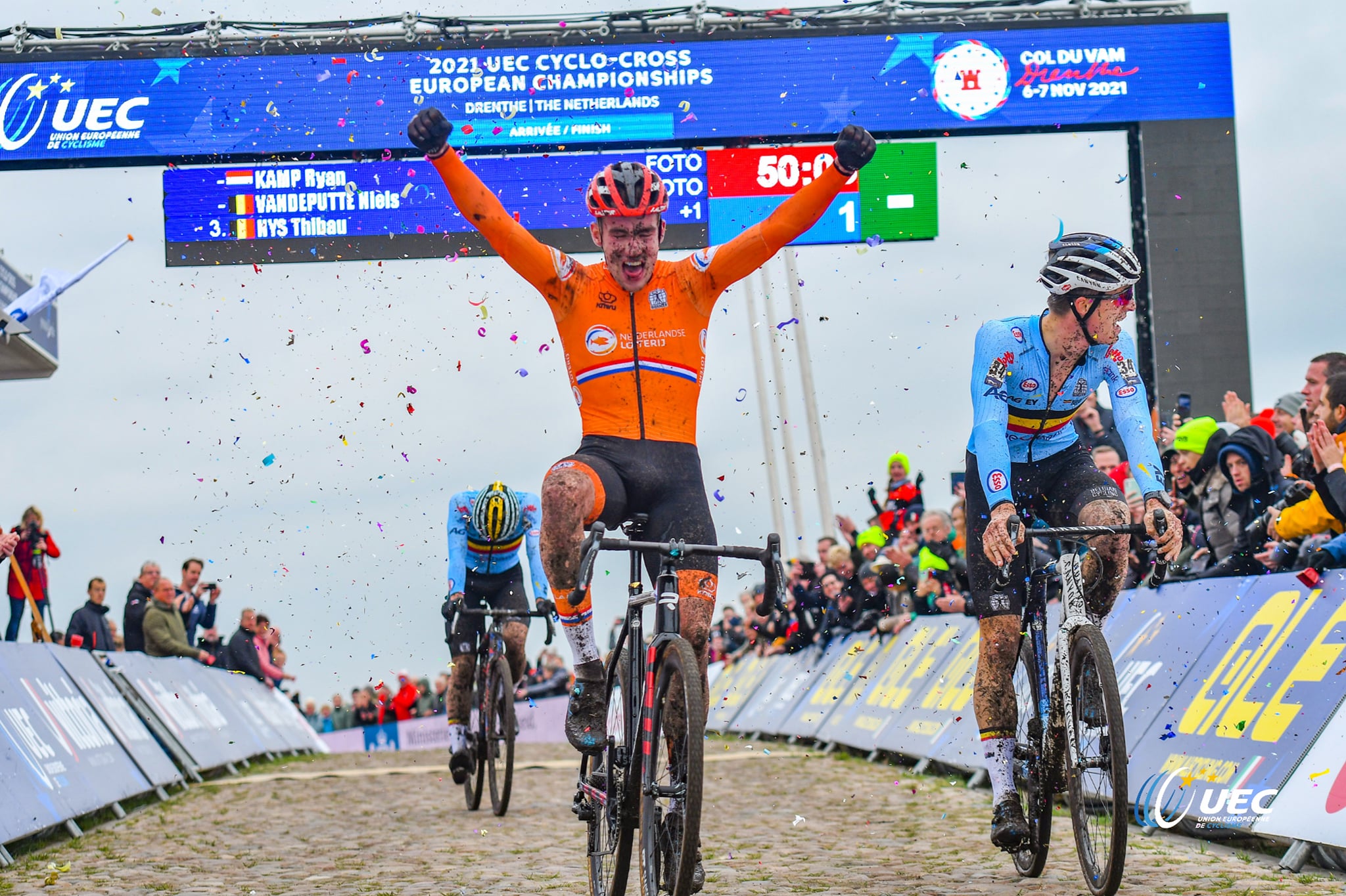 COL DU VAM (OLANDA) – In casa, l’olandese Ryan Kamp si riconferma campione europeo di ciclocross della categoria uomni Under 23. Bissato il successo dello scorso anno a s’Hertogenbosh, grazie ad un’affondo finale potente e letale ol quale è riuscito a precedere la coppia di belgi formata da Niels Vandeputte e il figlio d’arte Thibau Nys che gli hanno dato del filo da torcere fino alla fine.
