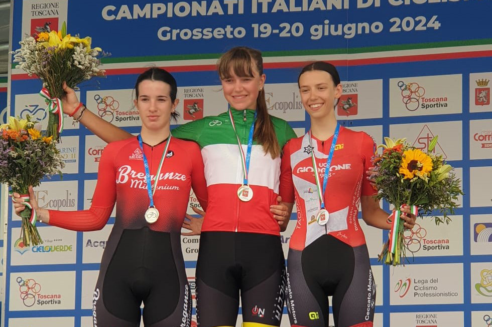 GROSSETO (GR) – Aveva già avuto l’onore di vestire la maglia tricolore tre anni fa a Chianciano Terme, quando si impose nella prova su strada delle Esordienti 1° anno; e oggi a Grosseto, sempre in Toscana, la mantovana Maria Acuti si è laureata nuovamente campionessa italiana aggiudicandosi la cronometro riservata alle Donne Allieve.