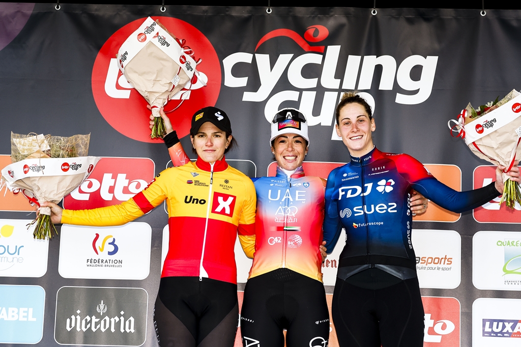 L’affondo decisivo però è stato quello di Marta Bastianelli, capace di fare il vuoto alle sue spalle sull’ultimo tratto in pavè. Ottima la reazione della brianzola Confalonieri, che negli ultimi 3 km si è sobbarcata l’onere di alimentare l’attacco: uno sforzo che probabilmente ha permesso alla sortita di arrivare in porto, ma che le ha impedito di reagire allo scatto finale di Marta Bastianelli, che così chiude questa prima campagna del Belgio con tre podi in tre apparizioni: terza all’Omloop Het Nieuwsbland sabato, seconda all’Omloop van het Hageland domenica e a segno oggi a Le Samyn.