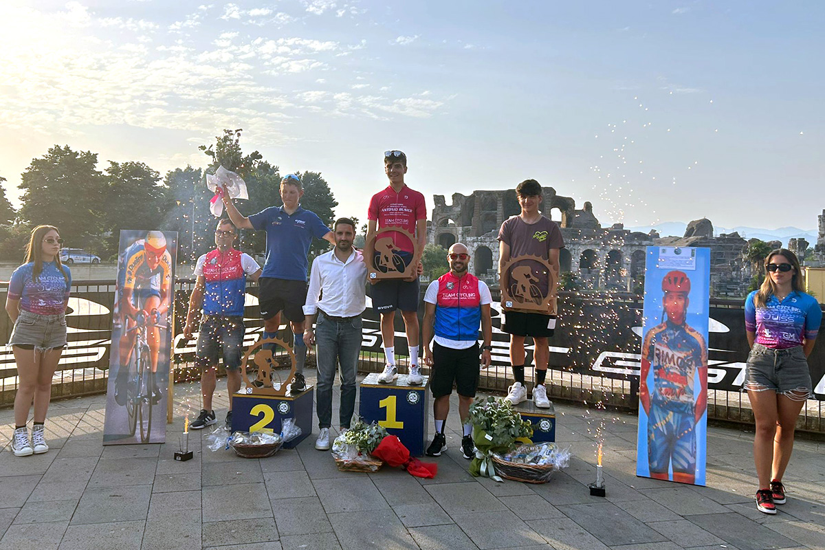 L’atleta diretto dall’ammiraglia da Giuseppe Di Fresco, già terzo quest’anno al Liberazione di Roma, si è aggiudicato il testa a testa in salita con l’ucraino Artur Amosov del team CPS, cogliendo così il primo successo stagionale. Per quanto gli siano mancati nel finale pochi metri per rientrare sui due battistrada, può ritenersi soddisfatto anche Michele Pascarella (Team Franco Ballerini), il cui terzo posto gli vale la conquista della maglia di campione regionale campano.