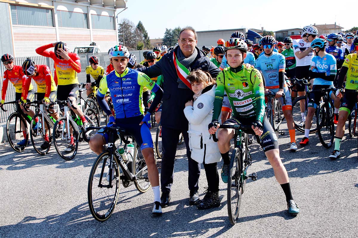 La giornata era cominciata con un gesto di vicinanza nei confronti del popolo ucraino. Il sindaco di Cimadolmo, a nome della comunità locale, di tutti i concorrenti e del mondo delle due ruote, ha voluto rendere onore portando in prima fila i due atleti ucraini in gruppo, Yaroslav Parashchak della Carnovali Rime Sias e Kyrylo Tsarenko della Gallina Ecotek Lucchini. Un caloroso applauso fatto con il cuore per loro.