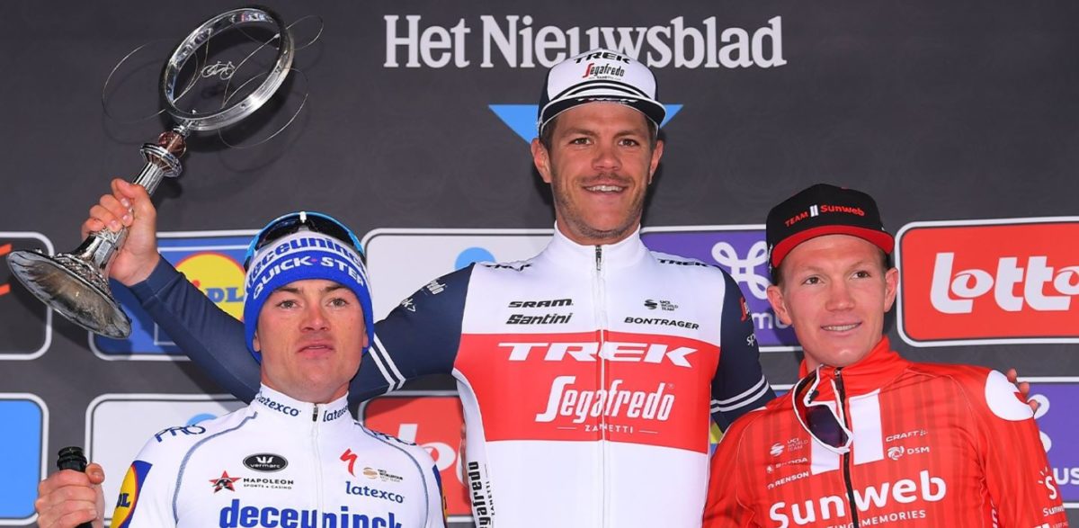 Il podio della Omloop Het Nieuwsblad 2020 vinta da Jasper Stuyven