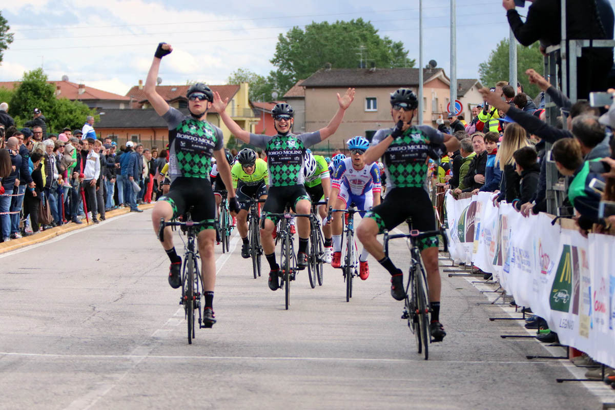 CASTEL D’AZZANO (VR) – Dominio assoluto della Borgo Molino Rinascita Ormelle nel 2° Gran Premio le Risorgive, gara per la categoria Juniores corsa oggi a Castel d’Azzano (Verona). Prima vittoria stagionale per Vojislav Peric, allo sprint, davanti ai compagni di team Manlio Moro e Alessio Portello. Quarta vittoria complessiva per la formazione nero-verde che si conferma ai vertici del movimento nazionale dopo i successi ottenuti ad Orsago, Roncadelle e Gorizia.