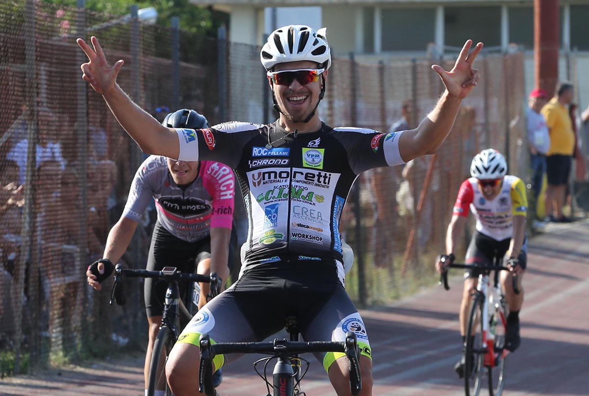 Sulla pista del centro sportivo del paese il ragazzo di Fano ha avuto la meglio dei due compagni di attacco Riccardo Marchesini (Pol. Tripetetolo) e Claudio Longhitano (Gragnano SC).