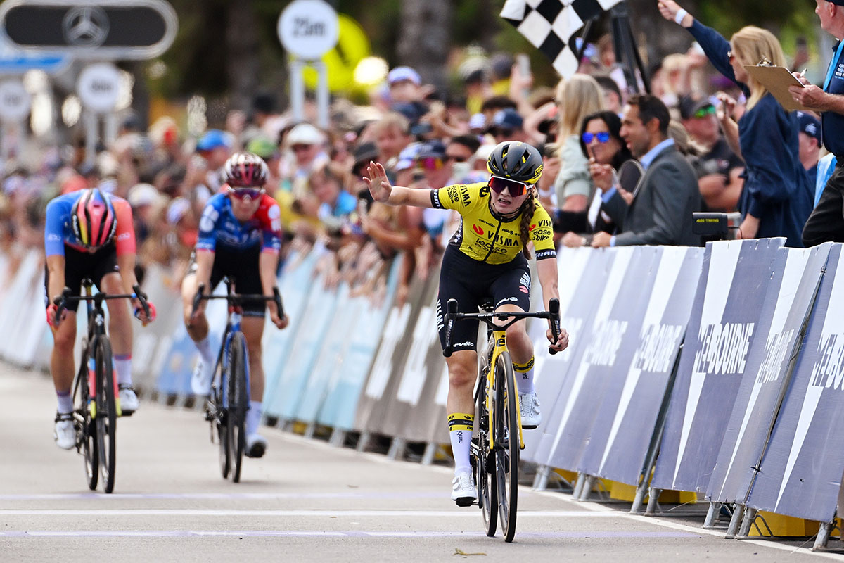 GEELONG (AUS) – In quella che era l’ultima recita delle donne nella campagna australiana, Rosita Reijnhout dà un saggio di bravura vincendo la 7° Deakin University Elite Women’s Road Race. La 19enne del Team Visma | Lease a Bike, al primo centro in carriera, prima si è avvantaggiata sulla seconda ascesa di Challamba in compagnia di Cecilie Uttrup Ludwig (FDJ Suez) e di Dominika Włodarczyk (UAE Team ADQ), per poi sorprenderle con un attacco a cinque chilometri dal traguardo. Vana la rincorsa nel finale del tandem inseguitore, con la 23enne polacca Włodarczyk che per una manciata di metri non è riuscita a celebrare il suo compleanno con un successo prestigioso.
