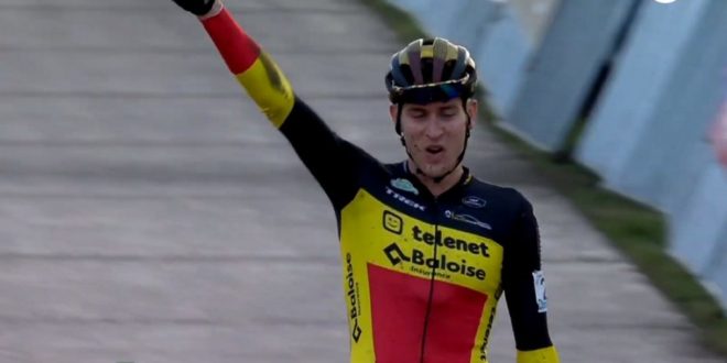 ZONHOVEN (BELGIO) – Nella quinta prova del Superprestige di ciclocross che si è disputata oggi a Zonhoven, in Belgio, l’assenza di Mathieu Van Der Poel, favorisce l’appassionate duello tra il campione nazionale belga Toon Aerts (Telenet Baloise) e il suo connazionale Laurens Sweeks (Pauwels Sauzen). Nel finale Sweeks scivola sulla sabbia ed Aerts allunga in maniera decisiva. Terzo Eli Iserbyt.