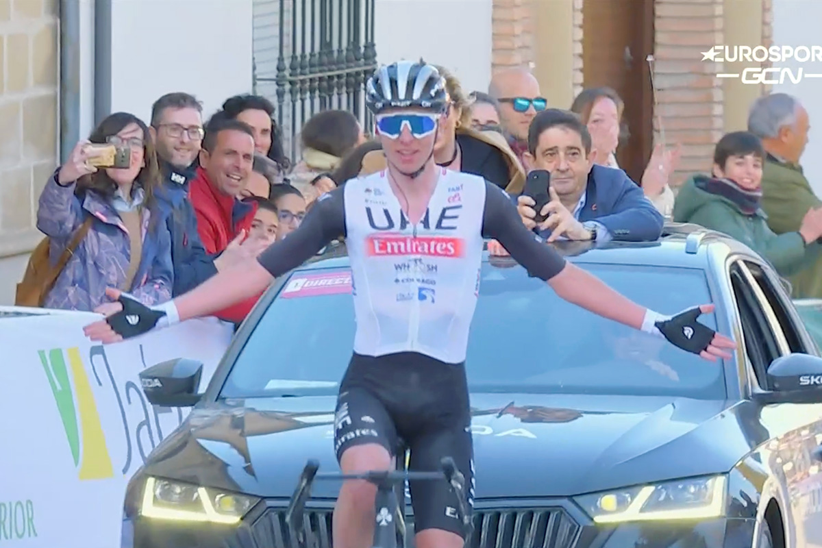 Sugli sterrati dell’Andalucia il due volte vincitore del Tour de France ha mostrato di essere di un altro pianeta, prima selezionando il gruppo con l’aiuto di Wellens e Hirschi, poi ha attaccato personalmente nel quinto degli otto tratti in sterrato. Nel giro di una manciata di chilometri Pogacar ha raggiunto il fuggitivo Samitier (Movistar), salutandolo poco dopo nel nono tratto bianco.