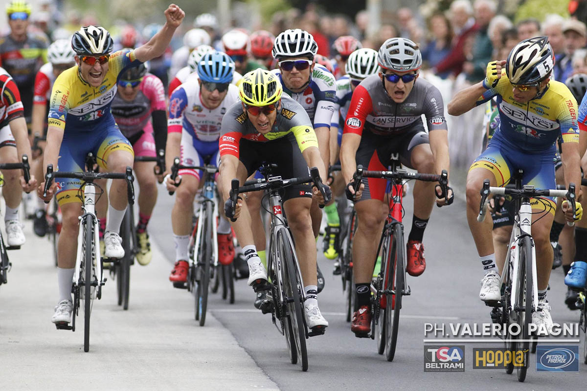 Fiaschi, senese classe 1997, aveva già esultato sullo stesso traguardo un anno fa, mentre in gennaio, al debutto assoluto con il Team Beltrami TSA – Hopplà – Petroli Firenze, era arrivato primo nella kermesse notturna che in Argentina anticipava la Vuelta a San Juan. Oggi ha regalato al patron di Hopplà Claudio Lastrucci (presente alla gara) e a tutta la formazione tosco-emiliana il gradino più alto del podio, grazie al colpo di reni che gli ha permesso di precedere Davide Masi della Mastromarco (che in un primo momento pensava di aver vinto e aveva alzato un braccio per esultare), Tommaso Rosa della Lan Service e tutto il gruppo.
