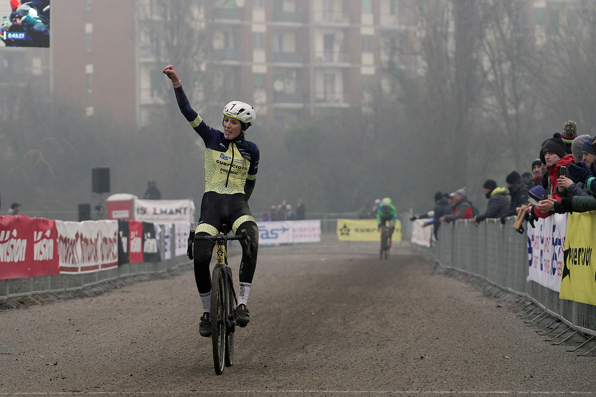 CREMONA (CR) – Più forte dell’influenza, già in palla nonostante le sole cinque gare stagionali disputate e più esperta di quanto non facciano pensare i suoi 18 anni. Sono stati questi gli ingredienti che hanno permesso alla valtellinese Valentina Corvi di vincere il titolo italiano di ciclocross tra le Under 23 e di regalare alla sua squadra, nonché sodalizio organizzatore della rassegna tricolore 2024, la sdeconda maglia tricolore dopo quella conquistata dalla junior Elisa Ferri.