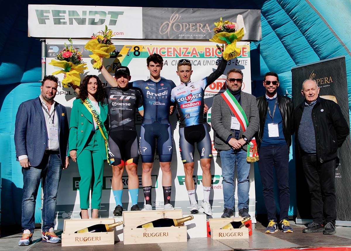 Il podio della Vicenza-Bionde 2022 (foto Photobicicailotto)