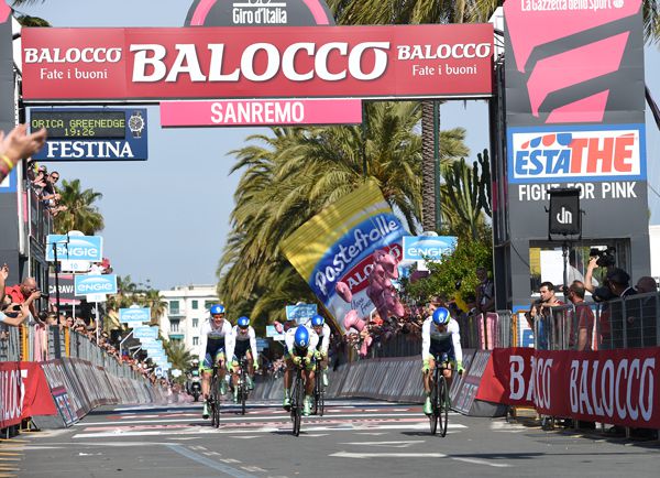 SANREMO (IM) – In una splendida cornice di pubblico, l’Orica Greenedge ha vinto la prima tappa delGiro d’Italia 2015, una Cronometro a Squadre di 17,6km da San Lorenzo al Mare a Sanremo. Il corridore australiano Simon Gerrans ha indossato la prima Maglia Rosa di leader della classifica generale.