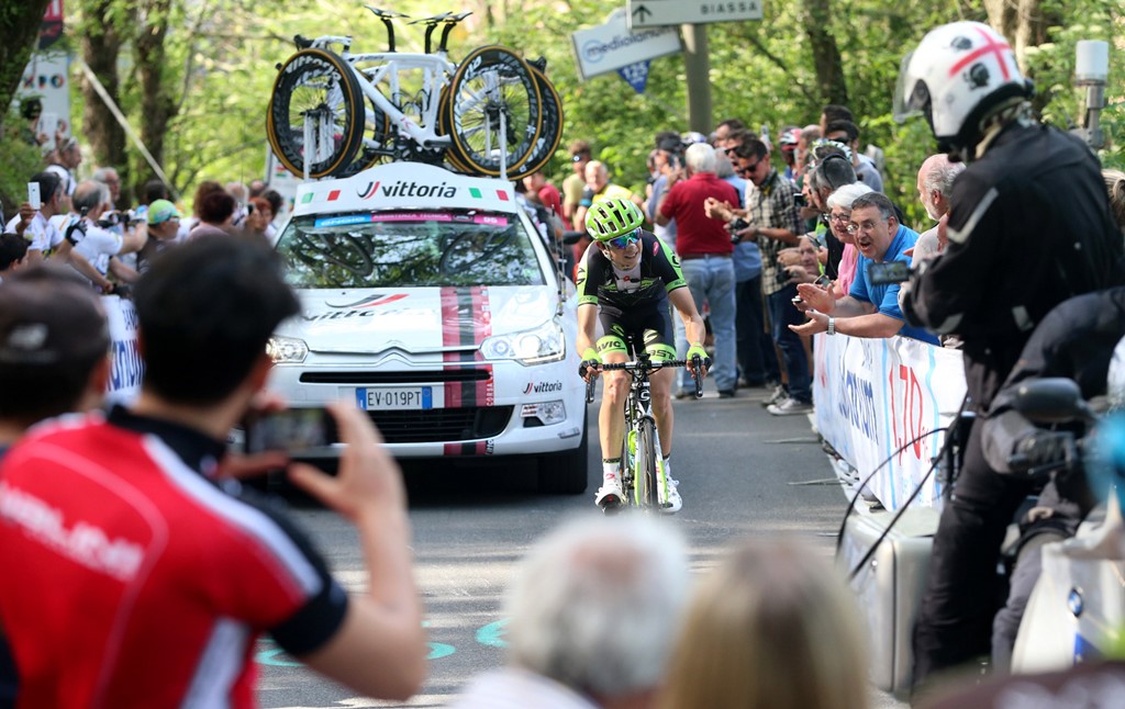 Formolo taglia per primo il traguardo. Dopo 22 secondi il primo gruppetto inseguitore regolato in volata dall’australiano Simon Clarke che veste la Maglia Rosa. Il corridore della Orica GreenEdge guida la classifica generale con 10″ di vantaggio sul compagno Esteban Chaves (Orica GreenEdge) e 17″ sulla coppia della Tinkoff-Saxo formata da Roman Kreuziger ed Alberto Contador.