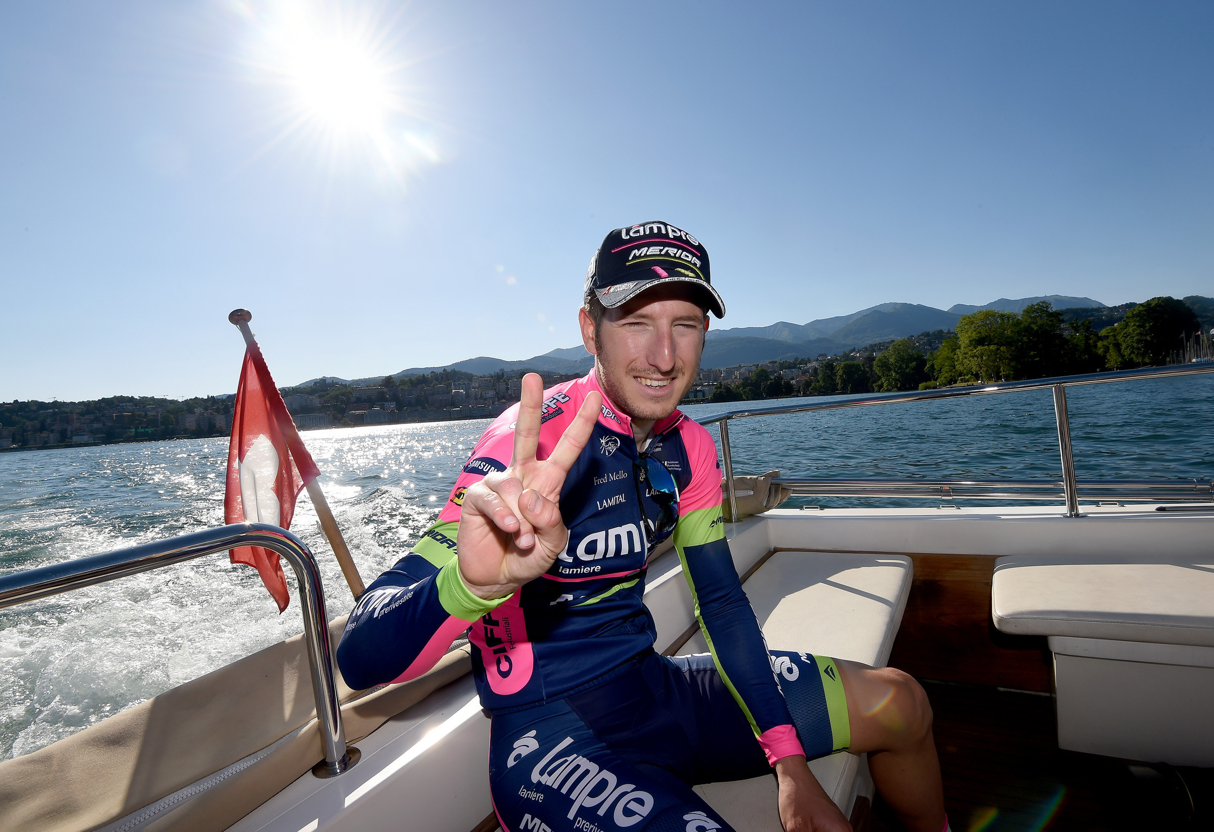 LUGANO (SVIZZERA) – Il treno migliore al Giro d’Italiaè quello della Lampre-Merida. E il velocista del momento è Sacha Modolo. La dimostrazione è arrivata oggi nella diciassettesima tappa di 134 km da Tirano a Lugano, unico sconfinamento del Giro 2015, vinta con autorità dal velocista veneto su Giacomo Nizzolo (Trek) e Luka Mezgec (Giant-Alpecin) a coronamento di un perfetto gioco di squadra. Bis dopo la volata di Jesolo della settimana scorsa. Alberto Contador (Tinkoff-Saxo) conserva intatto il suo vantaggio e la maglia rosa di leader.